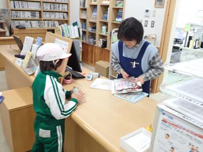 普段借りている図書館の本は、かもしか号でやって来ます。だから、学校の図書室の本より、ずっと多い図書館の本を借りられるのはうれしいけど、目移りします。それでも、借りる体験も無事終了。これからもたくさん本を借りてほしいですね。