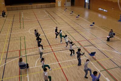 次は、大牛内七ツ舞。小学生に加えて、今年から中学生も参加できるように、プログラム等を調整しました。小学生の子どもたちも頑張っています。昨年より、全体の人数が少し増えて、中学生も躍動している感じです。こちらも日曜日に向けて気持ちが高まっています。手足の伸びが素晴らしいですね。
