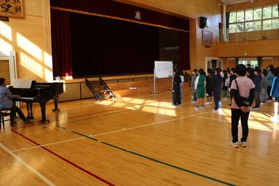 今日の小本小は音楽朝会でスタートしました。今年の音楽朝会では、口の開け方や声の出し方について、春から取り組んでいました。1年生から6年生までが歌っているのは春から同じなのですが、元気な小本小の子どもたちの歌声とは、ちょっと違って聞こえたのは私の気のせいだったのでしょうか。今月は音楽朝会が多く設定されています。どんな歌になっていくのかがさらに楽しみです。学習発表会でたくさんのみなさんに聞いていただきたいですね。