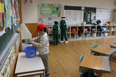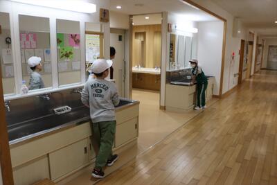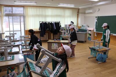 さて、そんな中、元気に学習しているのは1年生です。生活科の学習で作った「凧」が空を舞っています。自分が子どもの頃を思い返すと、なかなか作った凧をとばすのは大変だったイメージですが、子どもたちの凧は違うようです。前から、小本小の校庭は広くて、電線などもないので、思いっきり凧あげができるなぁと思っていました。そんな校庭と素晴らしい風のおかげで子どもたちは思う存分、凧あげを楽しんでいました。
