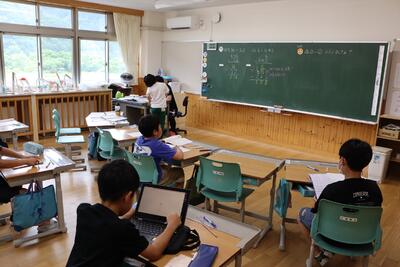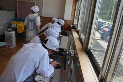 2日(水)の午後に5・6年生が調理実習に臨んでいました。5年生は「ゆでたまご」と「青菜のおひたし」、6年生は、「いろどりいため」だそうです。どちらも真剣そのものです。みんなで頭を寄せながら慎重にゆでたまごの殻をむく、5年生。私はいつも一気にむく感触を味わいたくて、失敗するタイプですが、本当に慎重な5年生です。