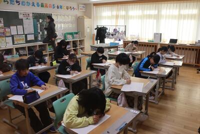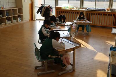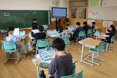 6年生たちは音楽室で練習していました。8人です。人数は少ないですが、1~5年生の気持ちにこたえようという意識が伝わってきます。こちらもとっても楽しみです。
