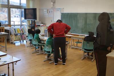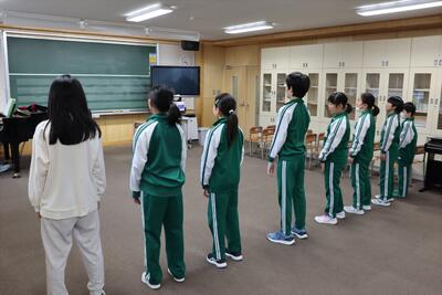1~5年生たちは6年生のために....という気持ちの表れでしょう。口を開けて、響く声を出しましょうという先生の声にすごく反応しています。写真をアップで載せられないのが残念に思えるくらい口を大きく開けようとしている子どもたちがいっぱいいます。すごく楽しみです。
