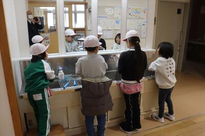 朝は音楽朝会でスタートしました。卒業シーズンが近い今日は、1~5年生と6年生に分かれての練習。