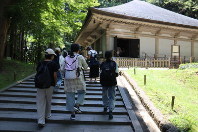次は、えさし藤原の郷。広い。ここでも、担任の先生のスタンプラリーが...。写真を撮るというミッションが多くあり、その場でスタンプをつく必要があったため、よく歩きました。この日の私の歩数は日常の倍以上となりました。ちなみに中尊寺の金色堂は写真に収められませんが、藤原の郷で撮ることができました。