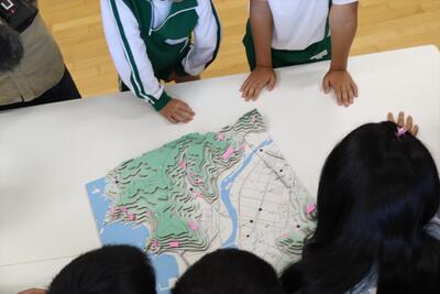 地図から読み取る情報もわかりやすいのですが、立体になったことで子どもたちもさらに学習を深めることができたようです。岩泉を故郷にもつ仲間として、年齢の差をこえて学習した、とても貴重な機会でした。岩泉高校のみなさん、ありがとうございました。