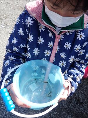 川まで行くと小さいバケツに入れて放流の準備です。